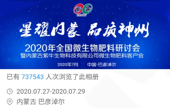 7月27-29日,在這激流涌動(dòng)的農(nóng)資新時(shí)代,由紫牛生物、內(nèi)蒙古肥料協(xié)會(huì)聯(lián)合主辦的“2020年全國(guó)微生物肥料研討會(huì)暨內(nèi)蒙古紫牛生物科技有限公司微生物肥料客戶會(huì)”在美麗的塞上江南巴彥淖爾隆重舉行,本次會(huì)議盛況線上線下同步進(jìn)行,線上圖片直播人氣爆棚,累計(jì)關(guān)注量超70萬(wàn)人次。